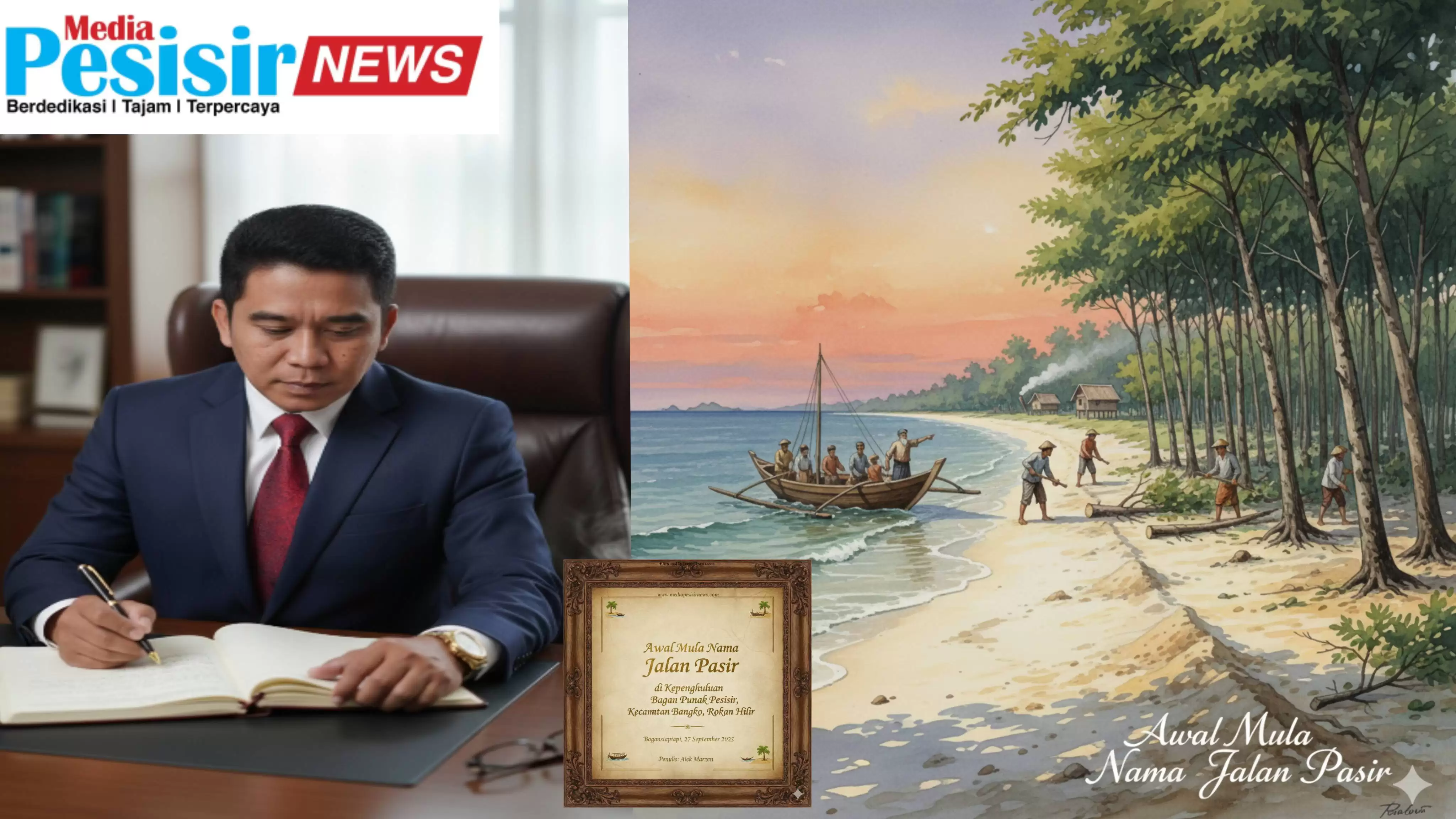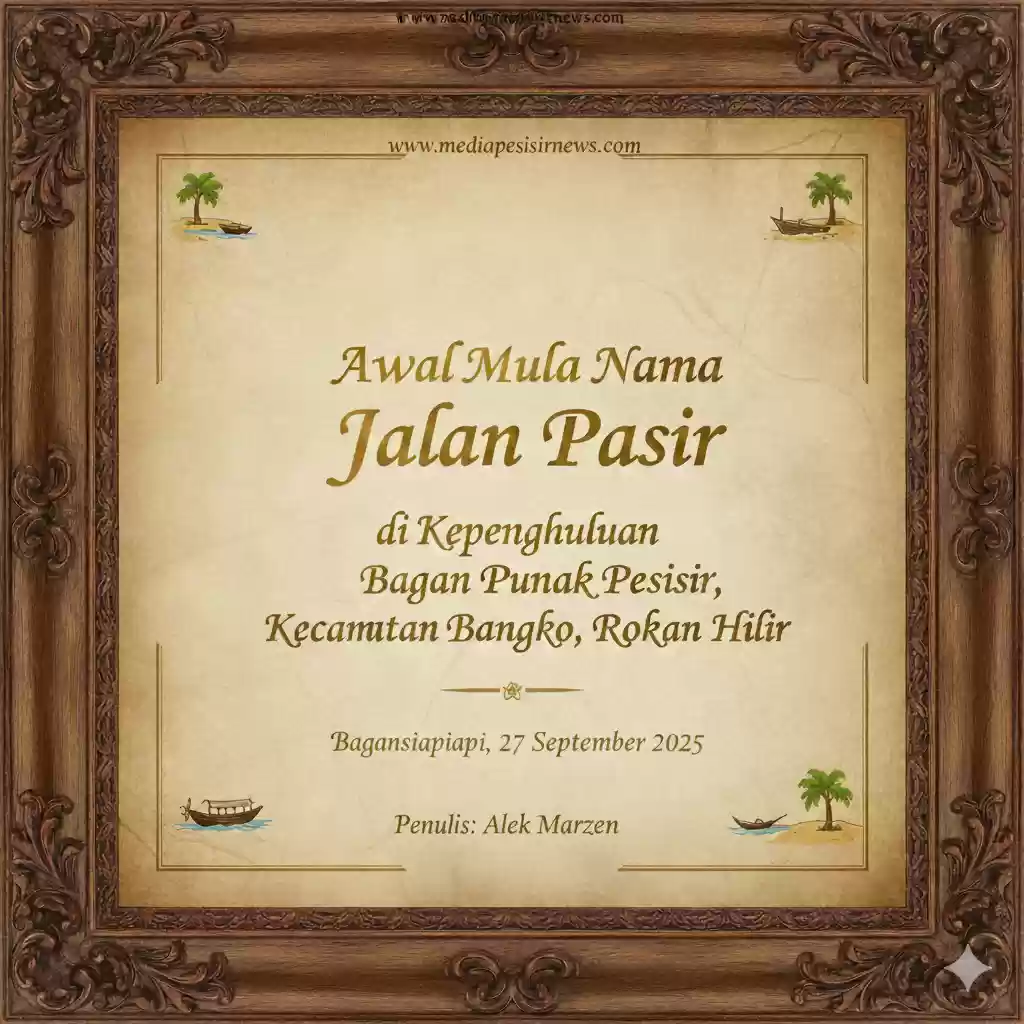 Mediapesisirnews.com _ Jauh sebelum deretan rumah kayu berdiri tegak dan bunyi kendaraan memecah sunyi, wilayah yang kini kita kenal sebagai Jalan Kampung Pasir di Kepenghuluan Bagan Punak Pesisir, Kecamatan Bangko, Kabupaten Rokan Hilir, bukanlah sebuah jalan. Ia adalah hamparan pantai luas, sebuah permadani alam yang terbentang di tepi Selat Malaka.