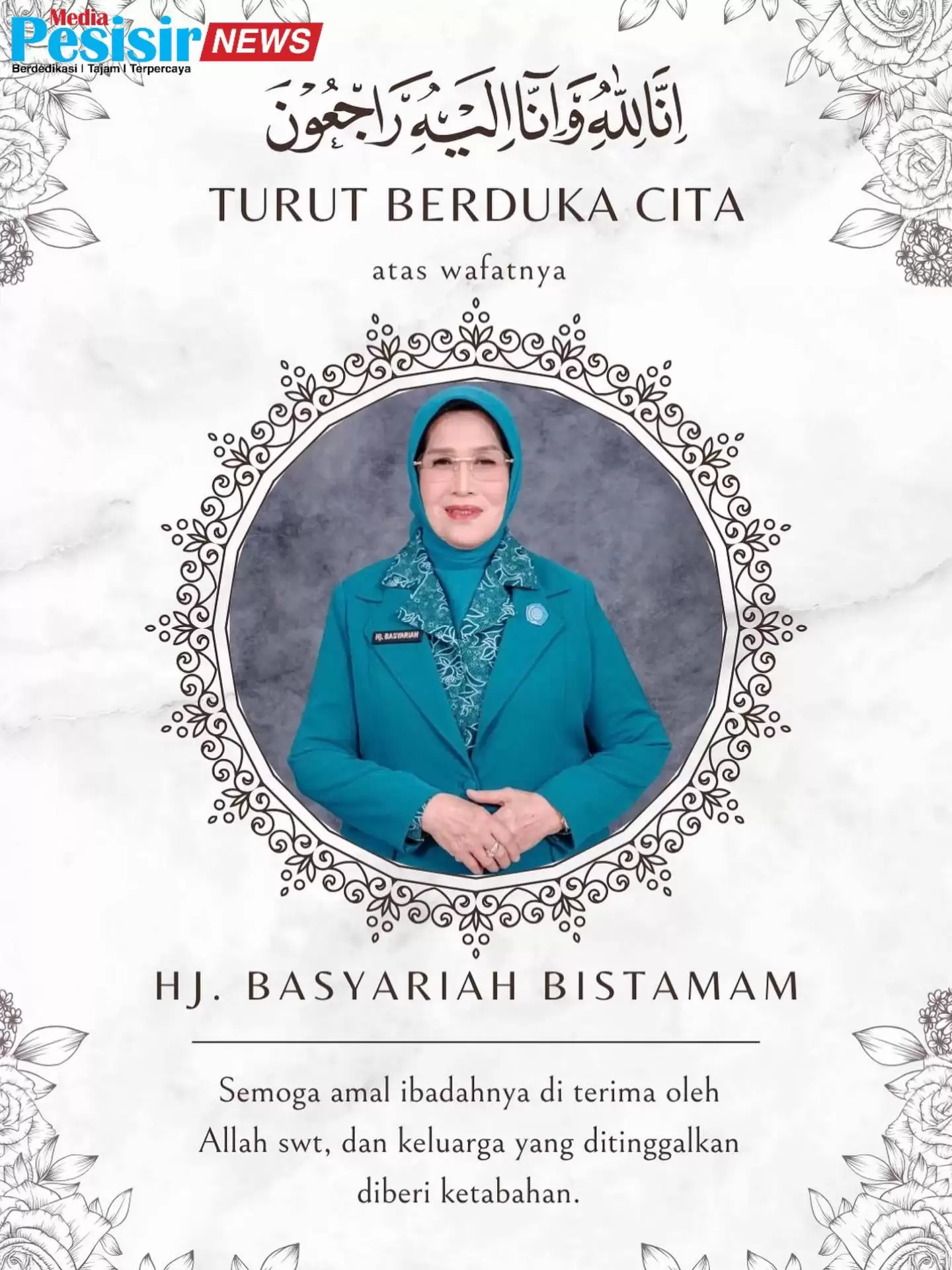" Innalillahi wa inna ilaihi raji'un. Semoga Allah SWT mengampuni segala dosa almarhumah Hj. Basyariah Binti Hamzah Maaruf, diterima segala amal ibadahnya dan menempatkannya di tempat terbaik di sisi-Nya." Amin ya rabbal'alamin, Kata Sekwan DPRD Rohil Budi Fitriadi terharu, Senin (04/08/2025) di Rumah Duka.