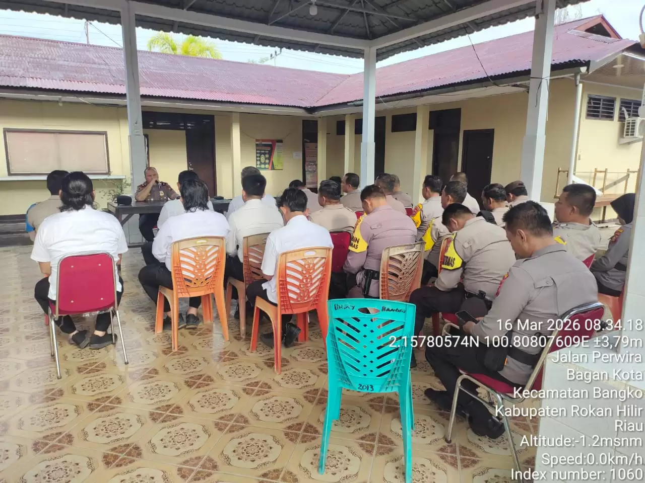 Kegiatan yang berlangsung sekitar pukul 08.30 WIB di Pondopo Polsek Bangko tersebut dihadiri para perwira dan personel Polsek Bangko, di antaranya Kanit Samapta AKP Paisal R, Kanit Binmas AKP Yatim, Kanit Reskrim Iptu Nober M.J. Sinaga, SH., MH., Kasubsektor Pekaitan Ipda Syufiar, Panit I Lantas Ipda Azwar, serta Ps. Panit I Opsnal Intelkam Aiptu Mustafa Ramadhan.