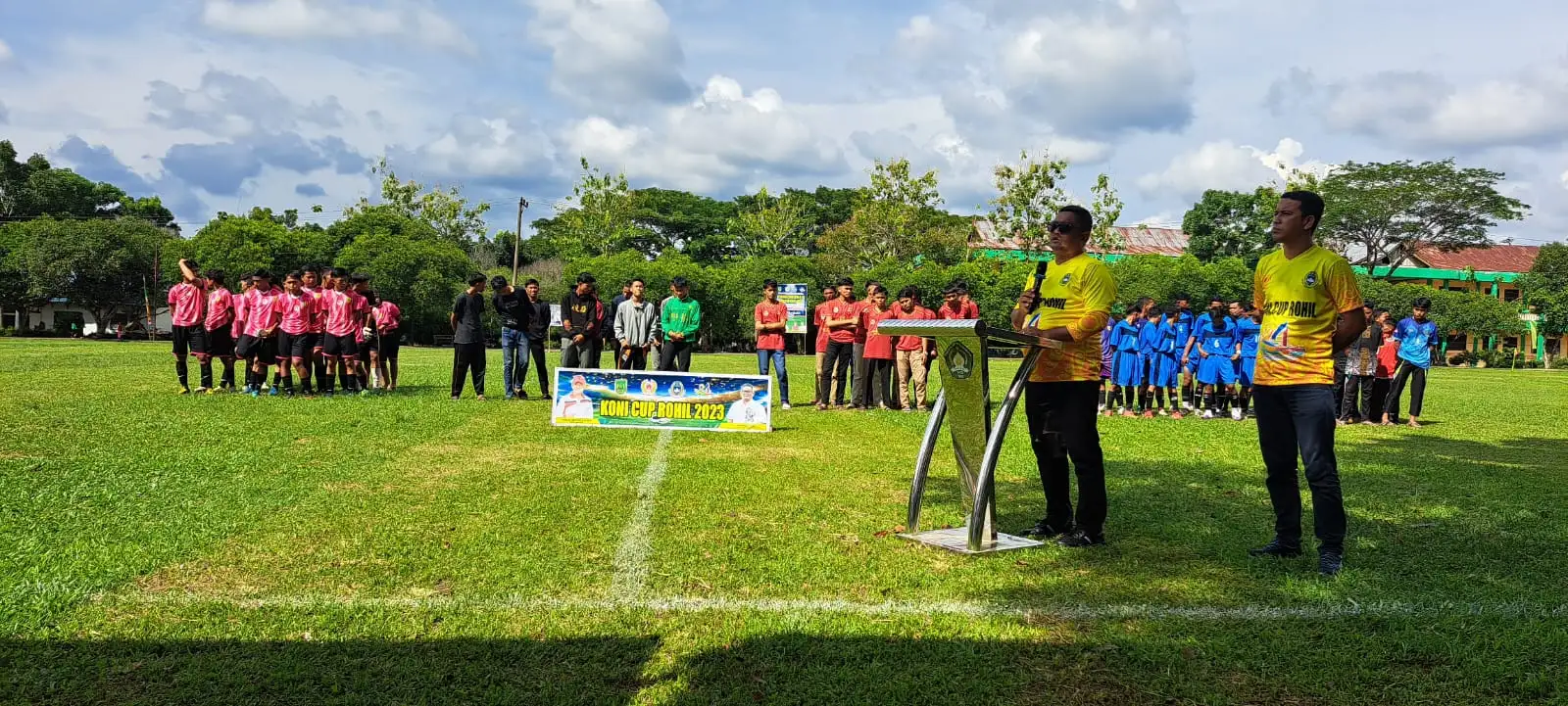 ROHIL, Mediapesisirnews.com | Komite Olahraga Nasional Indonesia (KONI) Kabupaten Rokan Hilir (Rohil) Provinsi Riau secara resmi membuka turnamen sepak bola U 18 piala KONI Cup 2023 se-Kabupaten Rohil di lapangan bola kaki Pesantren Al-Majdiyyah, Sabtu (21/10/2023).