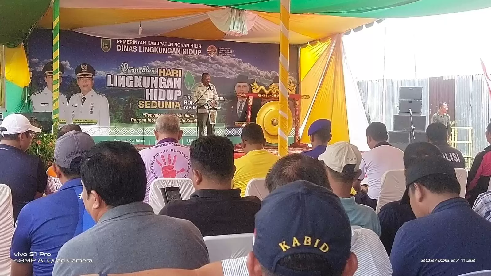 Kepala DLH Rohil Suwandi, S.Sos., pada kata sambutannya menyampaikan peringatan HLH Sedunia tahun 2024 di Rohil diwarnai dengan sejumlah kegiatan diantaranya Pawai keliling Piala Adipura, pembagian sembako kepada petugas kebersihan DLH Rohil, penyerahan santunan BPJS ketenagakerjaan kepada petugas kebersihan yang meninggal dunia hingga penyerahan penghargaan kepada sekolah yang berprestasi, penghargaan kepada Pengawas yang mengumpulkan plastik terbanyak dan penanaman pohon di sepanjang jalan Pelabuhan Baru, Bagansiapiapi.