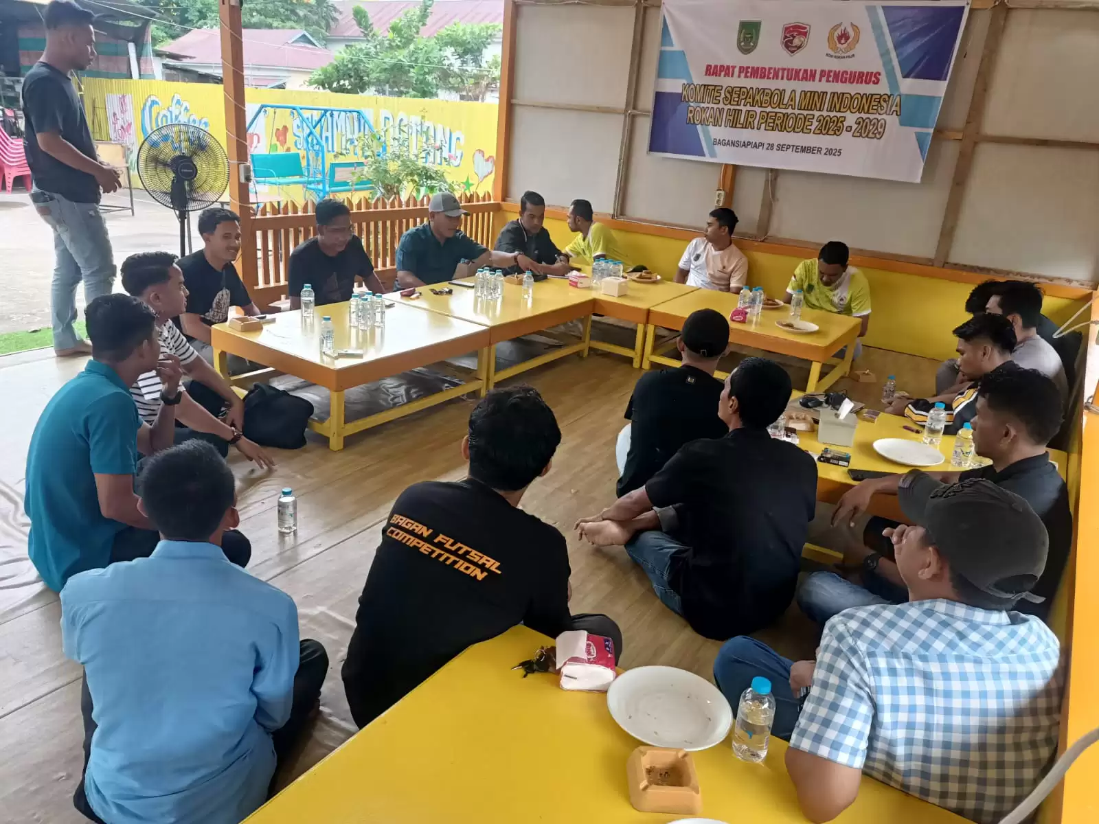 BAGANSIAPIAPI, Mediapesisirnews.com | Komite Sepak Bola Mini Indonesia (KSMI) Kabupaten Rokan Hilir, Riau, resmi membentuk kepengurusan baru periode 2025-2029 melalui rapat yang digelar di Bagansiapiapi, Minggu (28/9/2025).