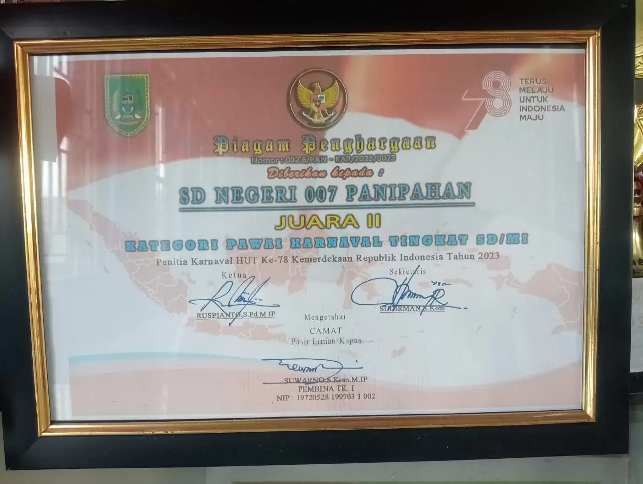 4. Juara II Pawai Karnaval tingkat SD/MI Se Kecamatan Pasir Limau Kapas, Rohil, bertepatan HUT RI Ke-78 tahun 2023.