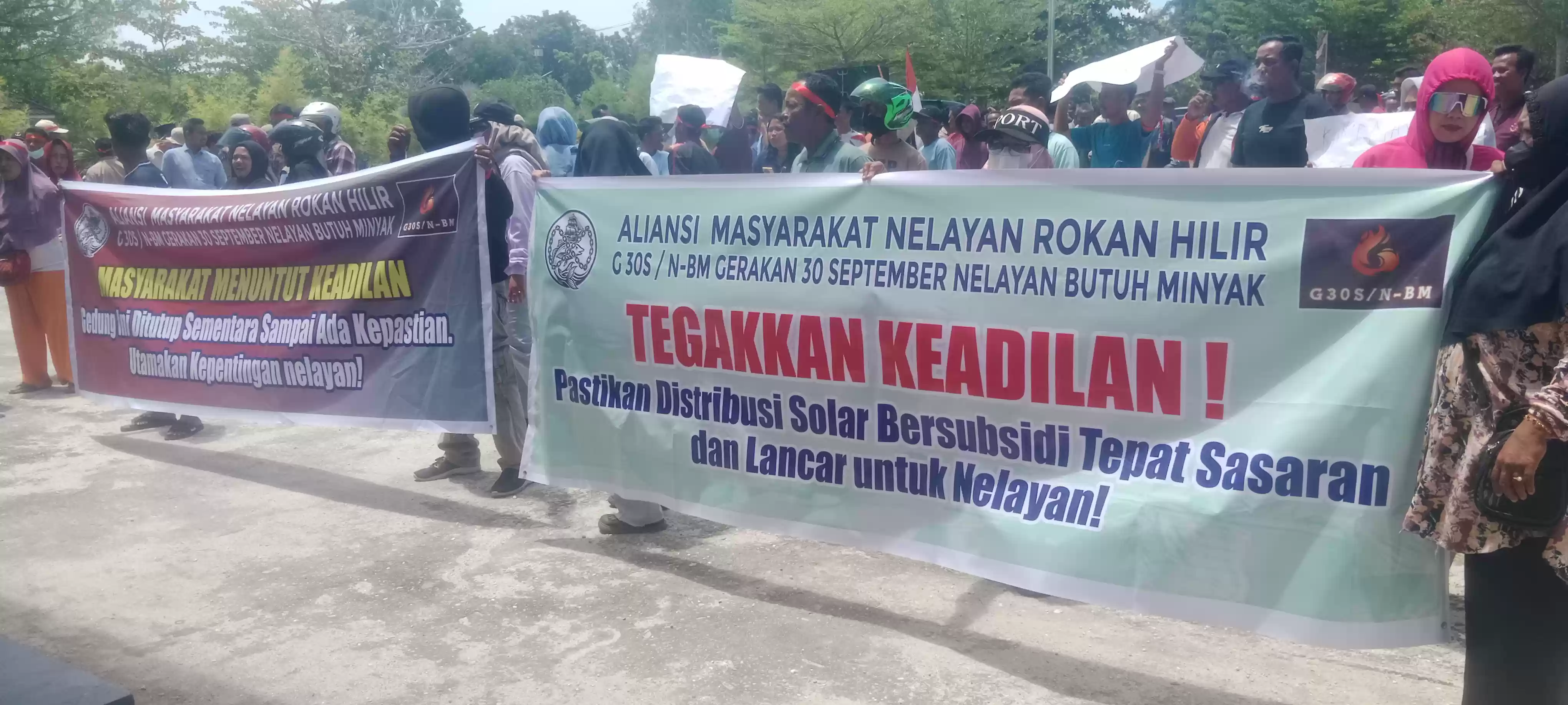 "Jikapun ada persoalan hukum di SPBU BUMD Rohil, kami tidak peduli. Yang kami tahu, nelayan menderita karena tidak bisa melaut akibat krisis solar selama tiga bulan terakhir," ujar salah satu peserta aksi.