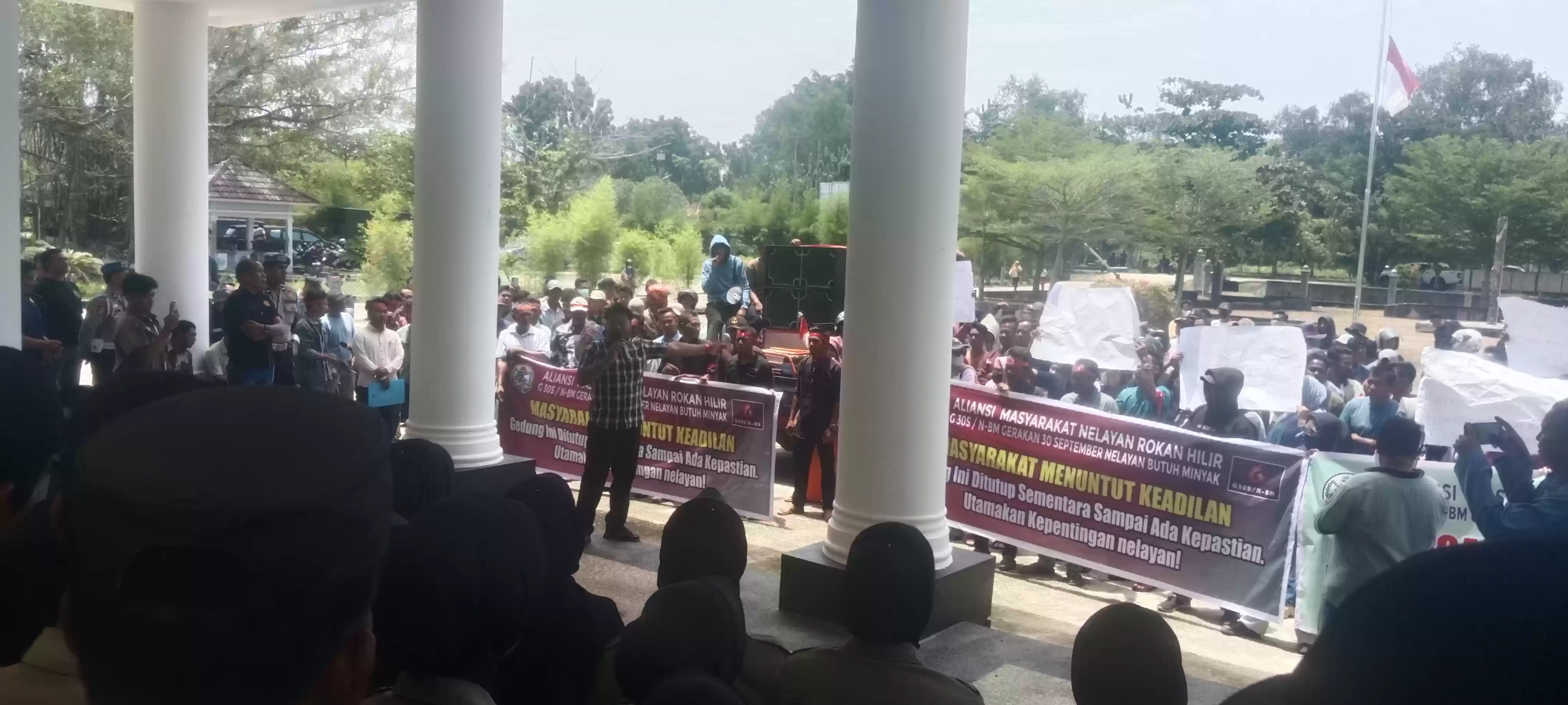 Bagansiapiapi, Mediapesisirnews.com | Krisis bahan bakar minyak (BBM) jenis solar bersubsidi di Kabupaten Rokan Hilir (Rohil), Riau, semakin memprihatinkan. Ratusan nelayan bersama mahasiswa menggelar aksi unjuk rasa di depan gedung DPRD Rohil, Selasa (30/9/2025), menuntut pemerintah daerah segera mengatasi kelangkaan yang sudah berlangsung berbulan-bulan.