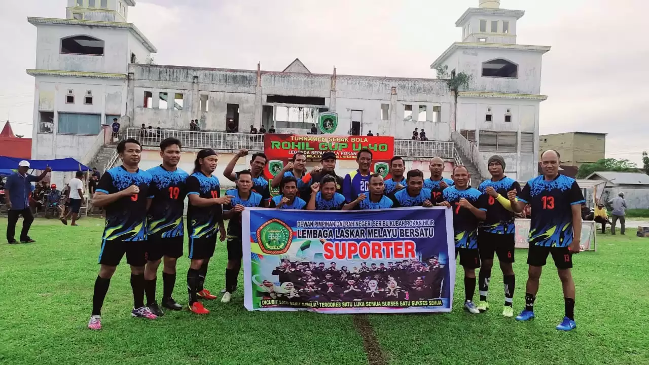 ROHIL, Mediapesisirnews.com | Tim Kesebelasan sepakbola Lembaga Laskar Melayu Bersatu (LLMB) Negeri Seribu Kubah Kabupaten Rokan Hilir ikut berpartisipasi dalam Turnamen Sepakbola U-40 Piala Bupati Rokan Hilir Tahun 2025.