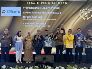 Selain itu, Direktur Utama PT BPR Rokan Hilir, Wan Muhamad Kudri, S.E., M.M., juga dianugerahi penghargaan sebagai Top Direktur Utama 2026, yang semakin memperkuat citra positif kinerja BUMD Rohil di tingkat nasional.