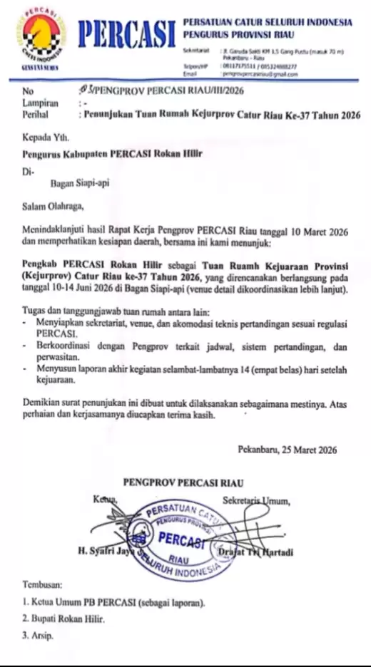 "Kami menyatakan Rokan Hilir siap menjadi tuan rumah dalam event catur tingkat provinsi ini. Ini adalah kehormatan sekaligus tanggung jawab yang akan kami jalankan dengan sebaik-baiknya," ujar Saipul, Selasa (14/4/2026).